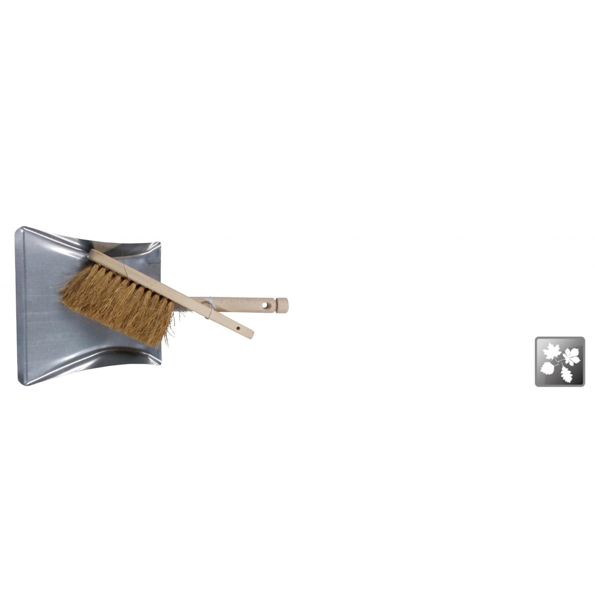 Verzinkt vuilblik met houten steel, geschikt voor binnen- en buitengebruik met handborstel met houten steel kokos.